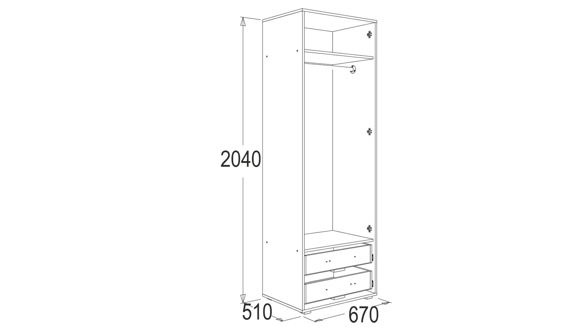 ОМЕГА-16 ШКАФ 2-Х ДВЕРНЫЙ ДЛЯ ОДЕЖДЫ